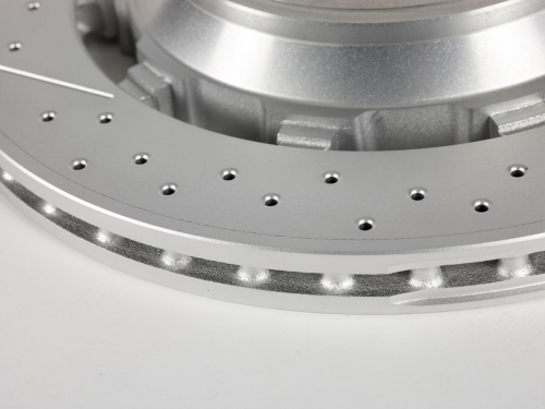 该款制动盘采用专利设计,将铝质制动盘帽与铸铁制动表面相连,结合了铸铁盘面耐高温的性能和铝制盘帽轻量化的优点。相较于同尺寸的一体式制动盘,这款制动盘最多可减重达30%,显著减少能耗和排放,并减少整车的簧下重量。