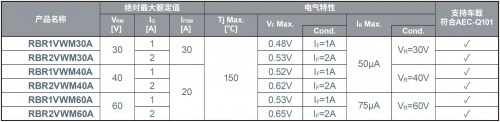 RBR系列既确保了效率提升的关键要素——低VF特性,又保持了此消彼长的低IR(反向电流)特性,是在两个要素之间取得良好平衡的系列产品,已于2020年6月开始量产。该系列的产品阵容中已有6款PMDE封装的机型。