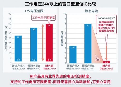 ROHM开发出高精度、超低功耗且支持40V电压的窗口型复位IC