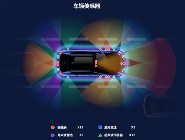 其中雷达组的2颗等效125线激光雷达,安置于大灯下方,可通过对外发射激光束来探测目标的位置、速度、距离等特征,绘制目标三维形态,让车辆能够看得更清、更远、更广;5颗连续性毫米波雷达,分列于车辆四角和前方正中央,24小时待命,探测并化解各种“隐藏危险”; 12颗高灵敏超声波雷达,分列在车身周围,在0.1-3米距离内进行精准回波定位,即使是在伸手不见五指的黑夜,也丝毫不影响车辆的精准判断。