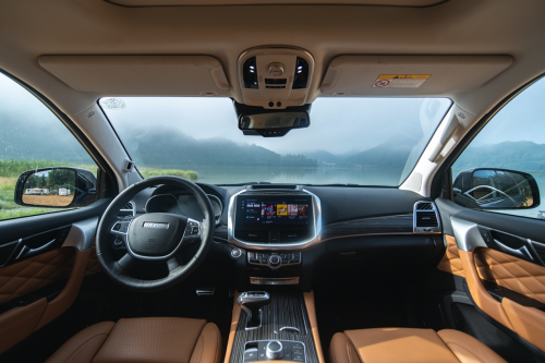哈弗H9的内饰采用大量的皮质包裹,质感非常舒服。12.3英寸的触控式液晶中控屏瞬间把科技感也拉了起来,方向盘的手动上下+前后调节、方向盘换挡、方向盘加热等功能,把人机工程做的非常不错。而在驾乘舒适性上,虽然哈弗H9定位硬派越野,但底盘调教同时兼顾了平时日常代步,悬架软硬适中,过减速带也不会有太大感觉。