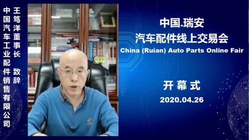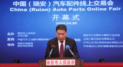 4月26日上午,瑞安市政府和京东云配主办的中国(瑞安)汽车配件线上交易会开幕式,开幕式以视频直播形式举行。瑞安市商务局局长苏正旺主持了开幕式,京东大汽车总经理庆岩、中国汽车工业配件销售有限公司总经理王笃洋通过连线方式参加开幕式并致辞。瑞安市人民政府副市长林政洪致辞并宣布“中国(瑞安)汽车配件线上交易会”开幕。