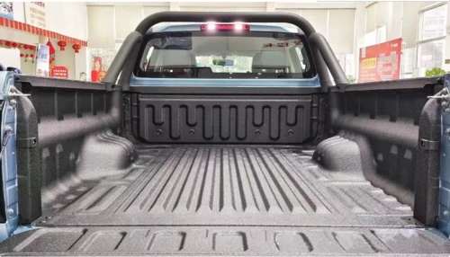 除此之外,在装载能力方面,新征服者猛将柴油8AT比金刚炮略胜一筹,开启纯平箱2.0时代,全面取消轮毂包罩,车箱容积增加290L,装载空间再提升10%以上,对于用户来说也更实用。此外,新征服者猛将柴油8AT货箱尾板经过了加强加固,后挡板平放承载力加强,充分满足了装载实用性。