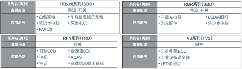 今后,ROHM将继续努力提高从低耐压到高耐压半导体元器件的品质,并继续加强别具特色的产品阵容,为应用产品进一步实现小型化和更低功耗贡献力量。